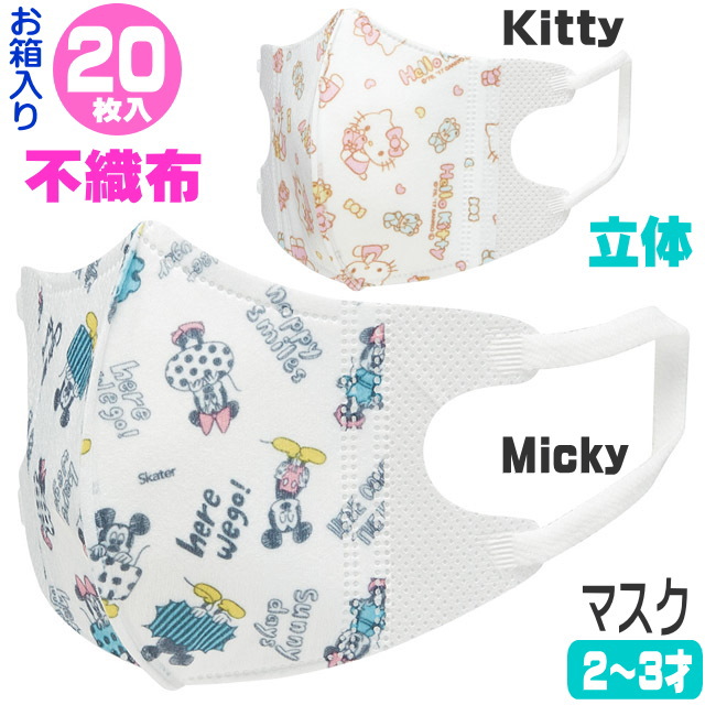 【在庫一掃★残りわずか】 マスク 立体 子供 不織布 マスク 20枚入り 子供用 セール ベビー ハローキティ Hello Kitty ミッキーマウス