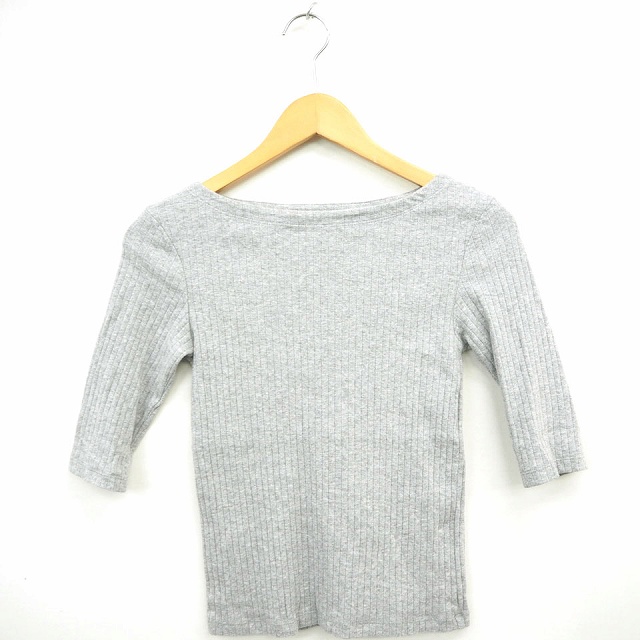 【中古】ジーユー GU ニット セーター リブ シンプル 丸首 七分袖 コットン 綿 S グレー /MT13 レディース