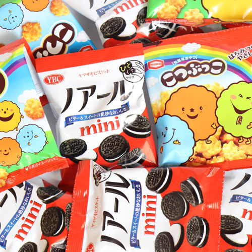 ココア風味とバニラクリームがベストバランスのビスケット「ノアールミニ」と、はちみつのやさしい甘さで次々と手がでるひとくちサイズの揚せん「こつぶっこ」のセットです。食べきり小袋サイズでおすすめです。