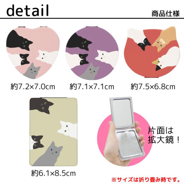 コンパクトミラー 折りたたみ 鏡 コンパクト ミラー 拡大鏡 付 携帯ミラー デザイン プリント ハンドミラー 二つ折り 手鏡 丸型ミラー 両面ミラー 動物 クロネコ 四角 長方形 丸 円 ねこ 猫 ネコ ハート kgm046