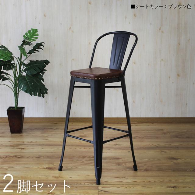DAAM-HC-LBR 2脚セット カウンターチェア ハイチェア ブラウン色シート 2色ご用意 幅41×奥行43×高さ105cm 座面高 77cm バーチェア