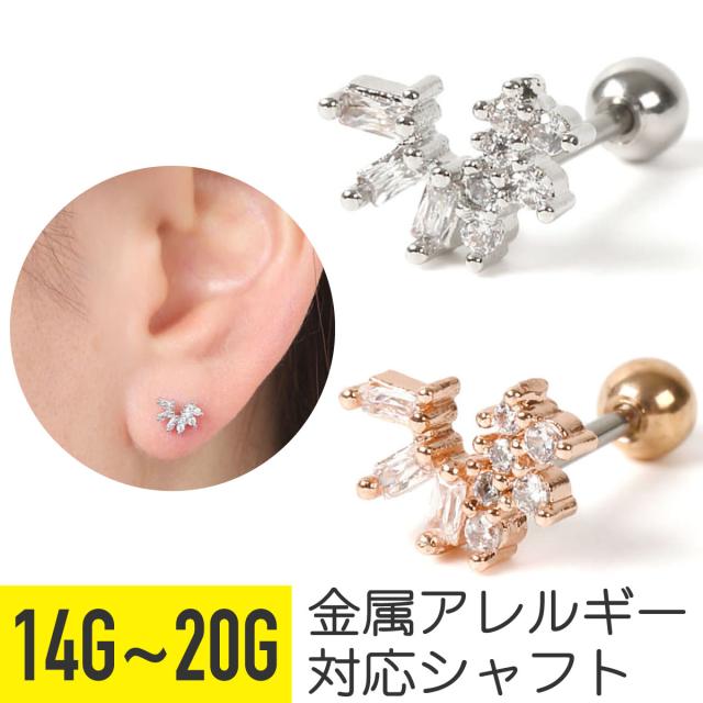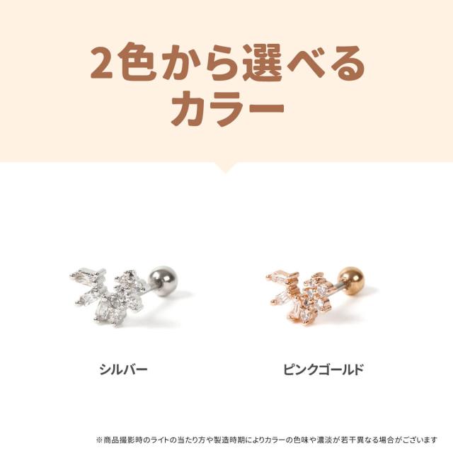 フラワーハーフサークル ジェム ストレートバーベル 14G 16G 18G 20G サージカルステンレス シルバー ピンクゴールド イヤーロブ ヘリックス 軟骨ピアス ボディピアス フラワー サークル