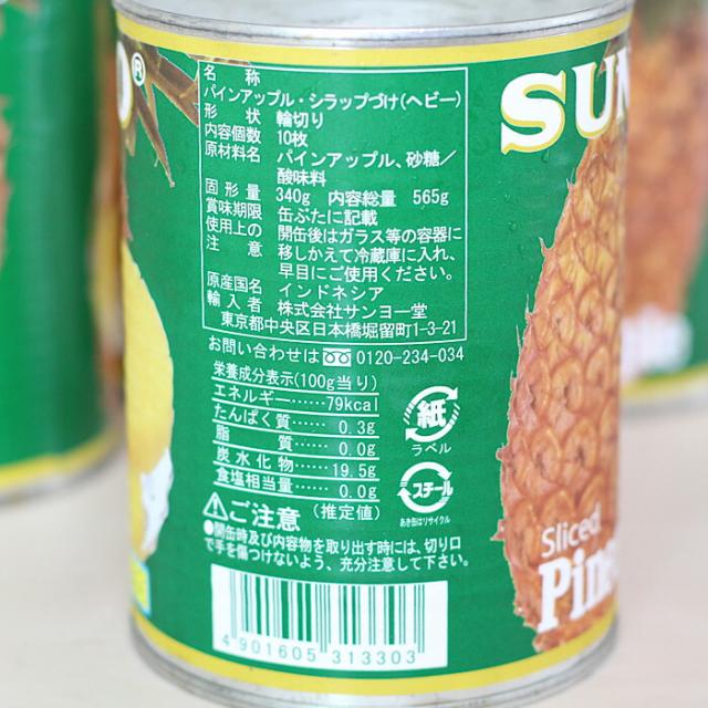 サンヨー パインアップル スライス 10枚スライス 565g 3号缶 バラ