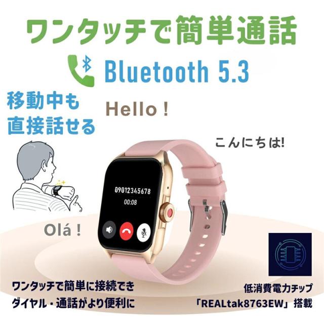 スピーカー&高性能マイクが内蔵され、携帯電話を出さなくても、通話することができます。携帯電話に着信が来た時に、スマートウォッチは振動しながら音でお知らせします。スマートウォッチの画面に相手の名前または電話番号が表示します。着信に応答または拒否することができます。更に電話をかけたり、通話履歴を表示したりすることができます。