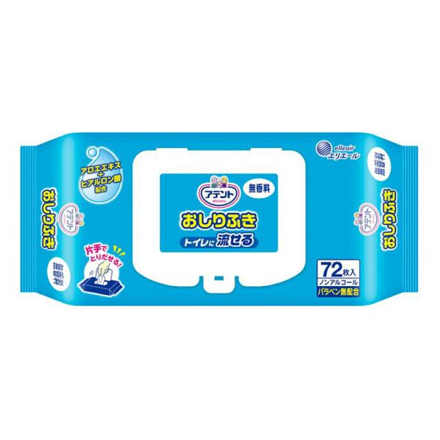 アテント 流せるおしりふき 無香料 72枚入