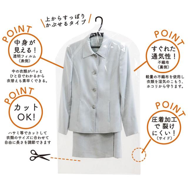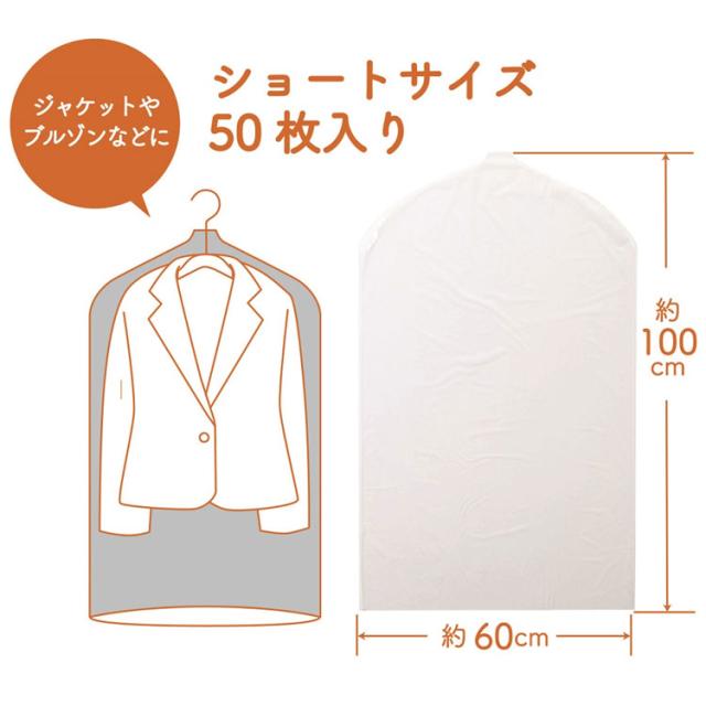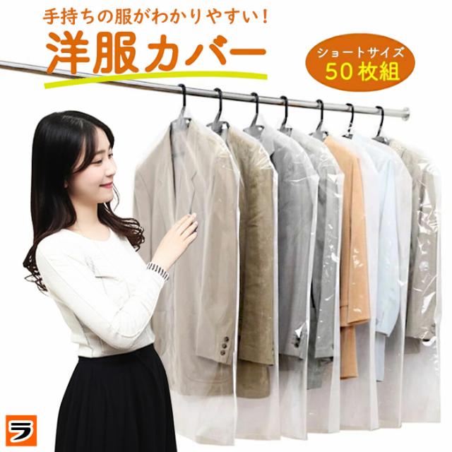 洋服カバー ショート 50枚セット 日本製 クローゼット 収納 衣類カバー まとめて 不織布 無地 透明 ビニール 衣装カバー 業務用 スーツカバー 保管 衣替え