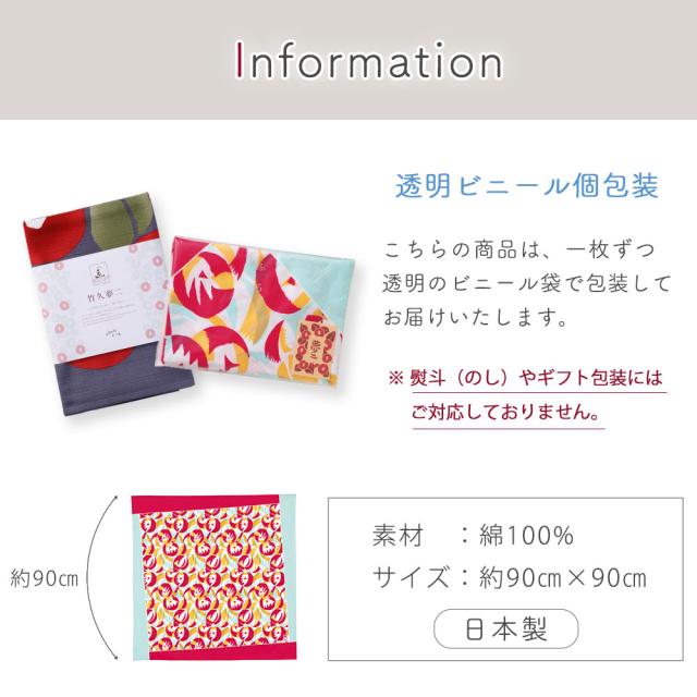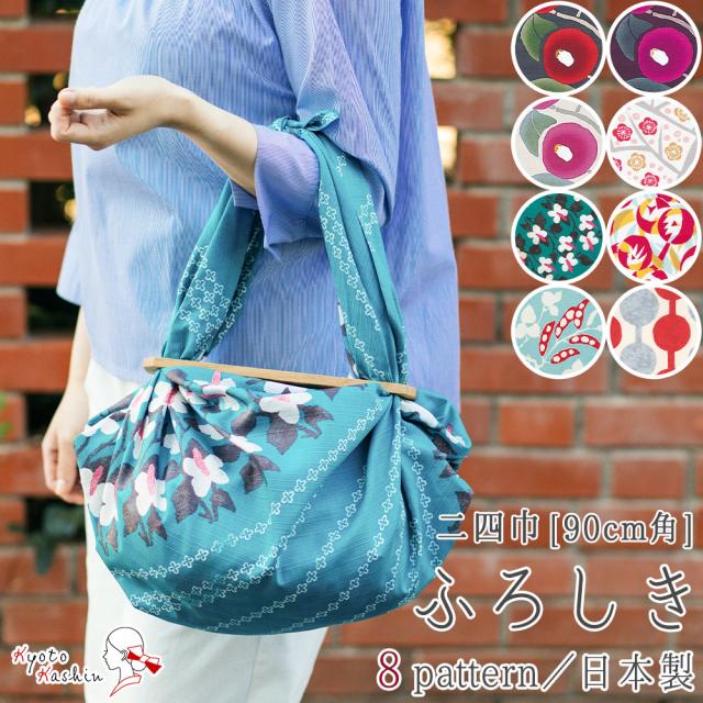 菓子折りや重箱・一升瓶などのラッピングにも使いやすい、大判の二四巾(約90cm×90cm)サイズの風呂敷です。