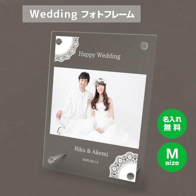名入れ無料 フォトフレーム サイズM ブライダル ウェディング 結婚祝い 写真立て フォトスタンド アクリル ギフト プレゼント 結婚 結婚式 メモリアル 誕生日 記念品 記念日 お祝い 贈り物 バレンタイン オリジナル インテリア かわいい 女子 おしゃれ シンプル 刻印