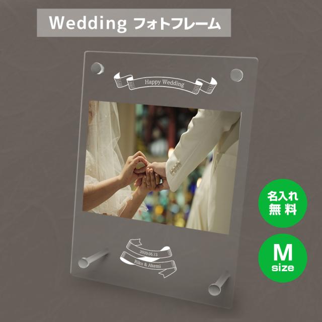 名入れ無料 フォトフレーム サイズM ブライダル ウェディング 結婚祝い 写真立て フォトスタンド アクリル ギフト プレゼント 結婚 結婚式 メモリアル 誕生日 記念品 記念日 お祝い 贈り物 バレンタイン オリジナル インテリア かわいい 女子 おしゃれ シンプル 刻印