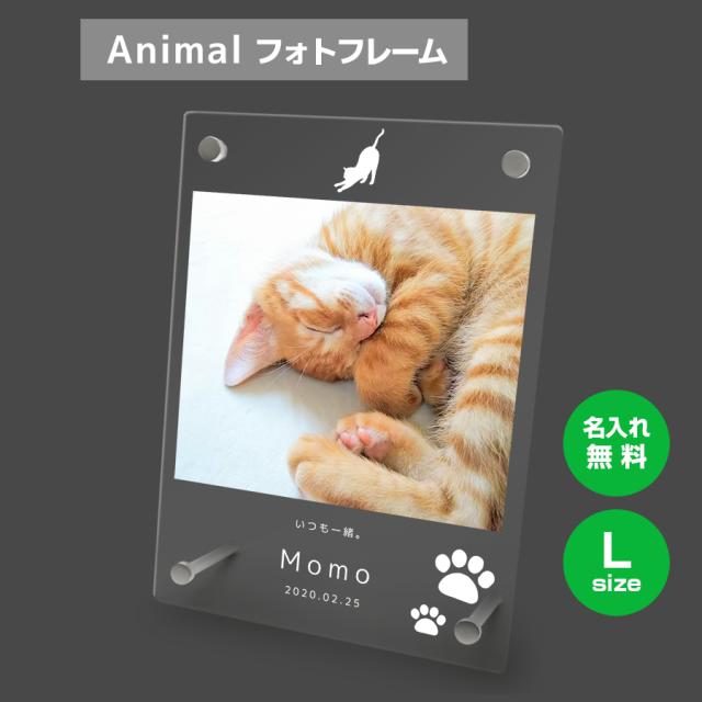 名入れ無料 フォトフレーム サイズL ペット ペットグッズ 写真立て フォトスタンド ペット用品 アクリル ギフト プレゼント 誕生日 記念日 オリジナル かわいい ペットメモリアル メモリアルグッズ 仏具 供養 思い出 猫 動物 メモリアル レーザー