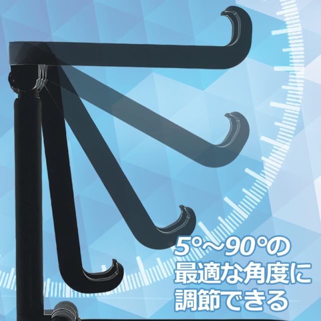 高さや角度が調整できるので、ラックの高さに合わせて設置することも可能です。