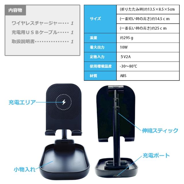さらに小物も置ける便利なスタンド型ワイヤレスチャージャーです。