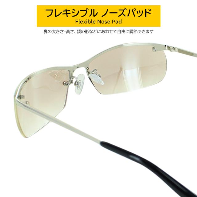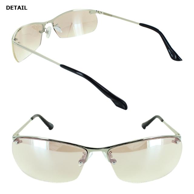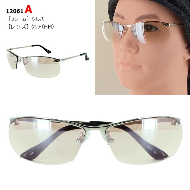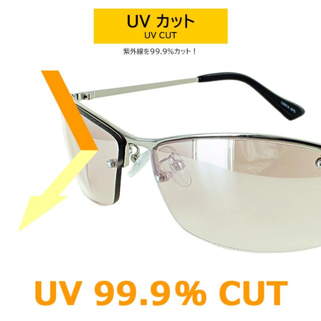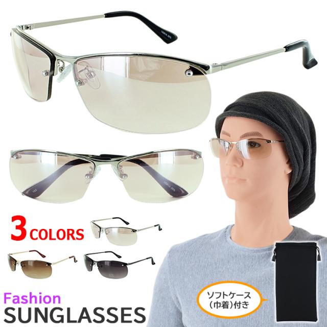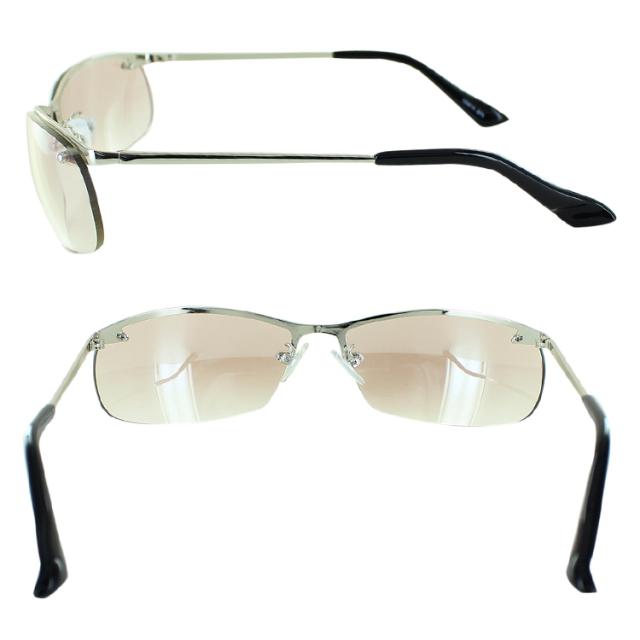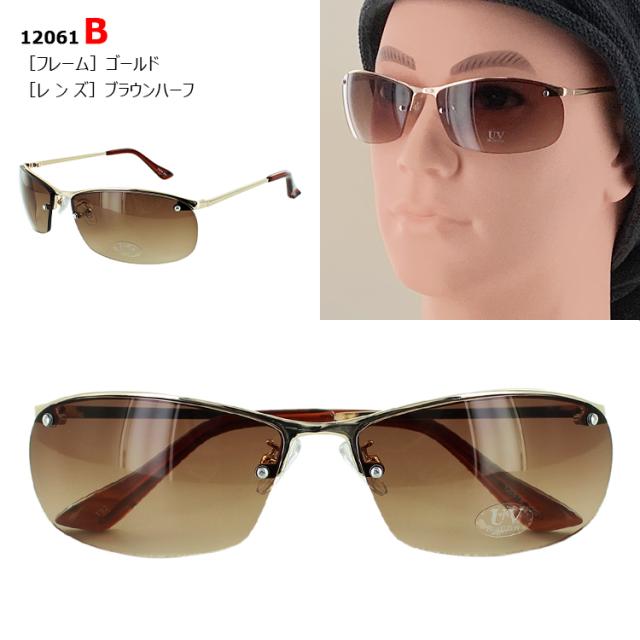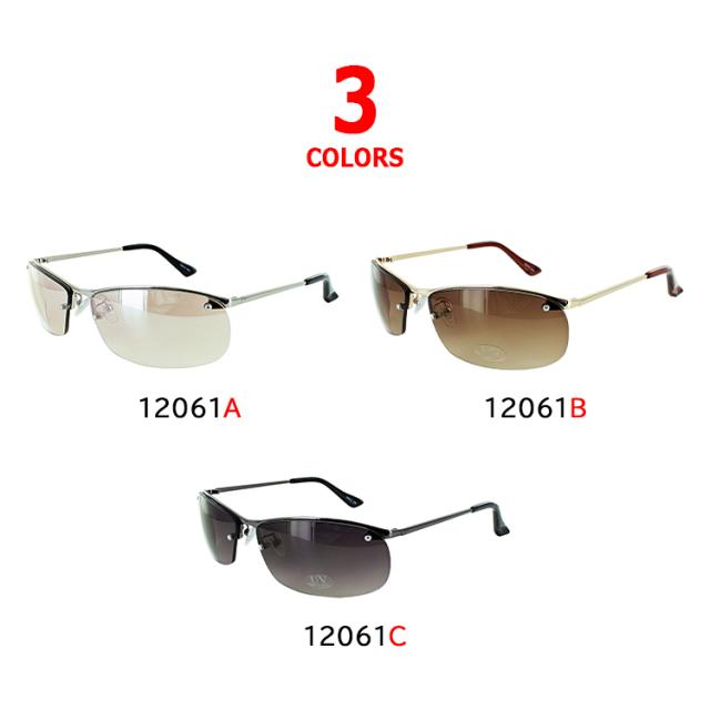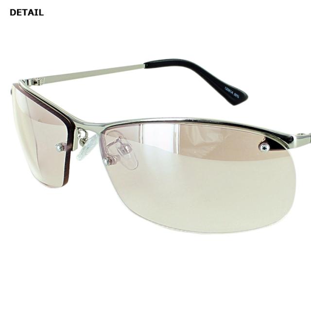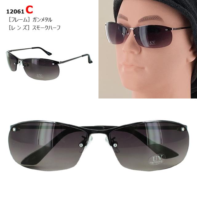 サングラス メンズ UVカット ハーフリム 12061 シャープなデザイン メタル 薄い 色 カラーレンズ おしゃれ ちょい悪 ファッショングラス 紫外線対策 日焼け対策 シルバー/クリアハーフミラー/ゴールド/ブラウン/ガンメタル/スモーク 定形外郵便で送料無料