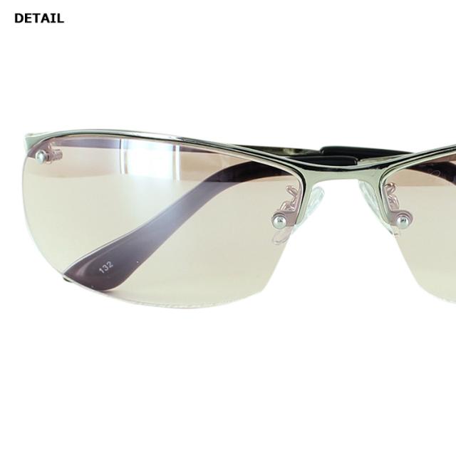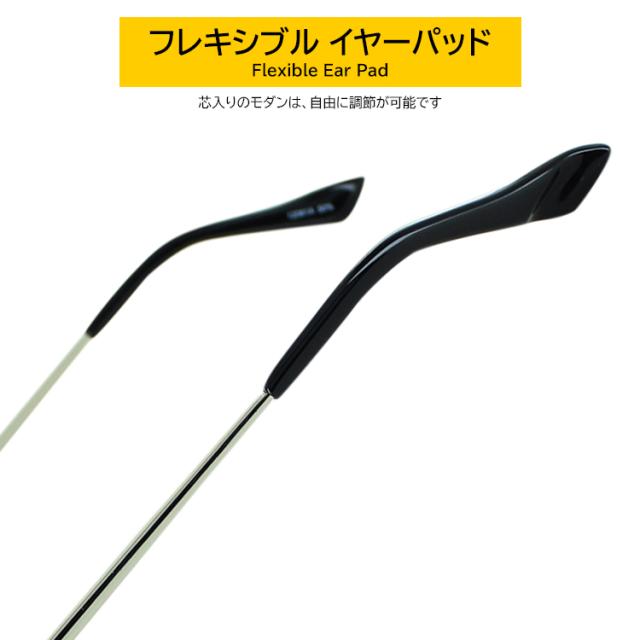 | A フレームカラー:シルバー レンズカラー:クリア(ハーフミラー) B フレームカラー:ゴールド レンズカラー:ブラウンハーフ C フレームカラー:ガンメタル レンズカラー:スモークハーフ | ●素材 レンズ素材:プラスチック(コーティング) レンズ枠素材: ニッケル合金(メッキ・塗装) テンプル素材:ニッケル合金(メッキ・塗装) ●仕様 UVカット 99% ●可視光線透過率 A:50% B:20% C:10% |