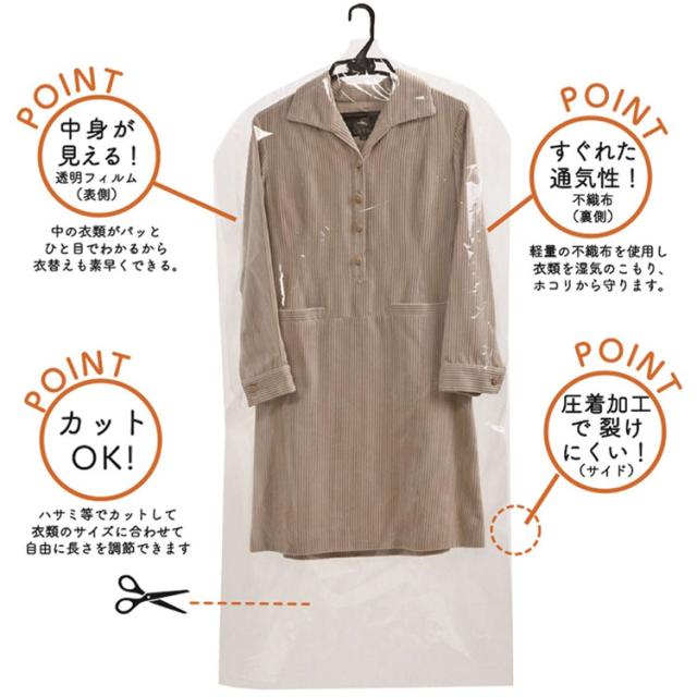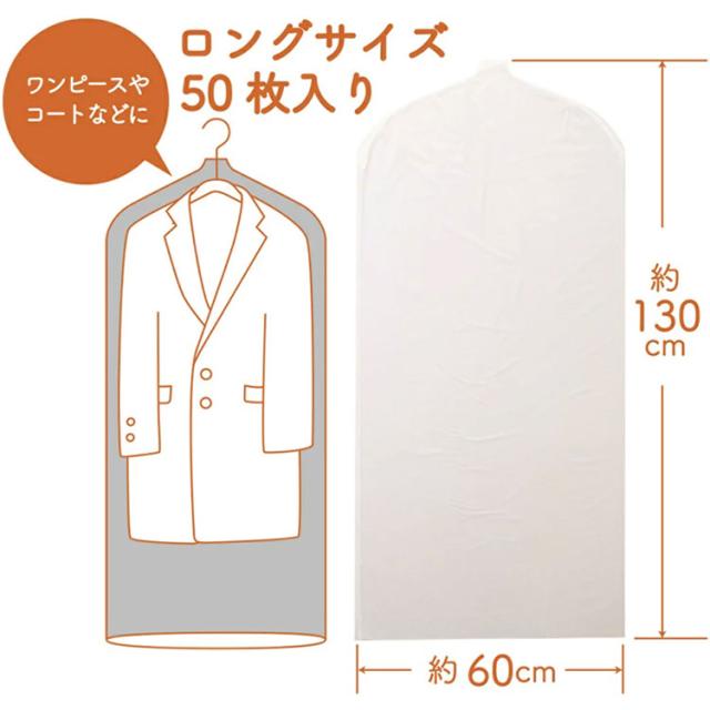 洋服カバー ロング 50枚セット 日本製 クローゼット 収納 衣類カバー まとめて 不織布 無地 透明 ビニール 衣装カバー 業務用 コートカバー スーツカバー 保管 衣替え