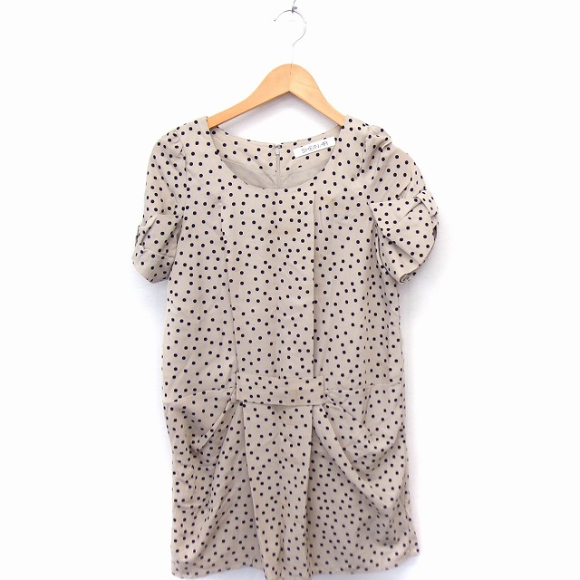 【中古】SHEIN AR ワンピース ドット ドレープ 丸首 半袖 ひざ丈 M ベージュ /FT37 レディース