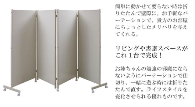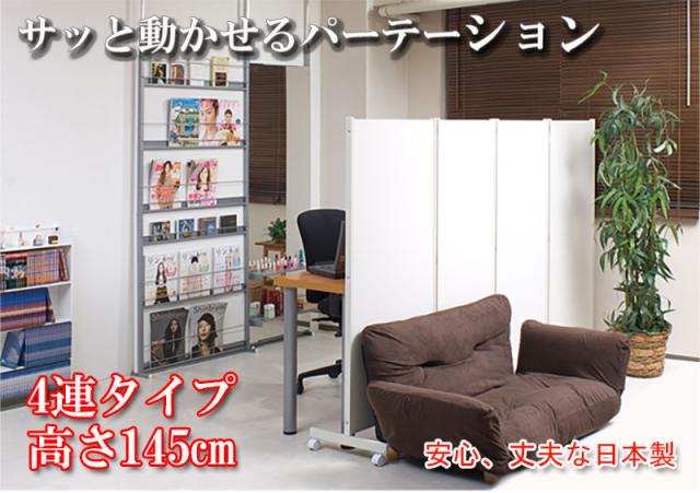 \ポイント消化!/ キャスター付きパーテーション4連H145(ホワイト/ナチュラル/ダークブラウン)