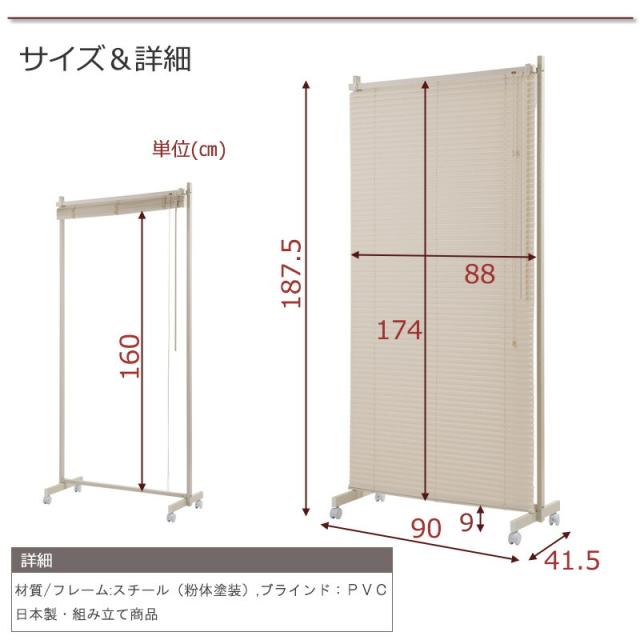 ■商品サイズ/本体:(約)幅90×奥行7(脚部41.5)×高さ187.5cm、ブラインド:(約)幅88×スラット幅2.5×高さ174cm
