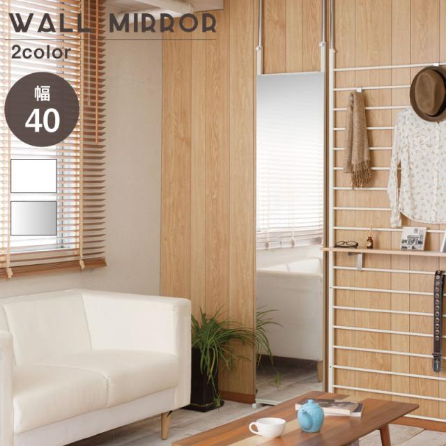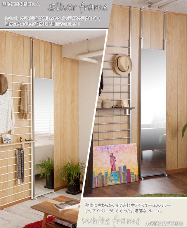 \ポイント消化!/ 突っ張り壁面ミラー 幅40cm ホワイト色 シルバー色 全身ミラー