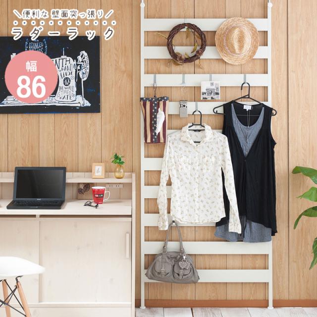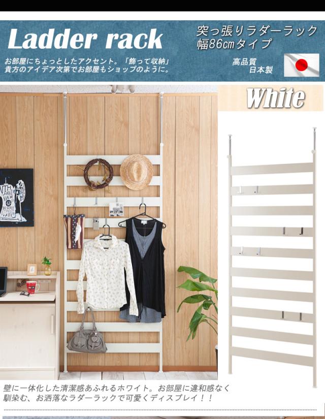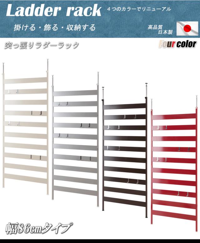 \ポイント消化!/ 壁面突っ張りラダーラック 86幅 4カラー ホワイト シルバー ブラウン レッド 日本製