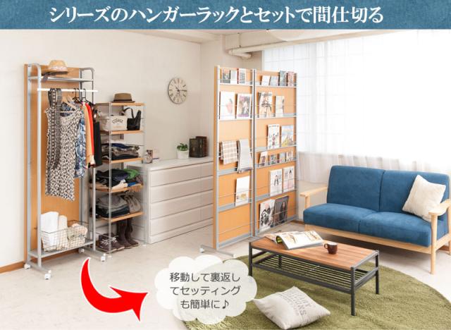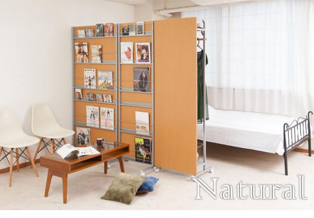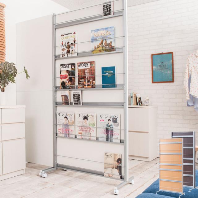 \ポイント消化!/ キャスター付きパーテーション幅90cm マガジンラックタイプ ホワイト色 ナチュラル色 ダークブラウン色