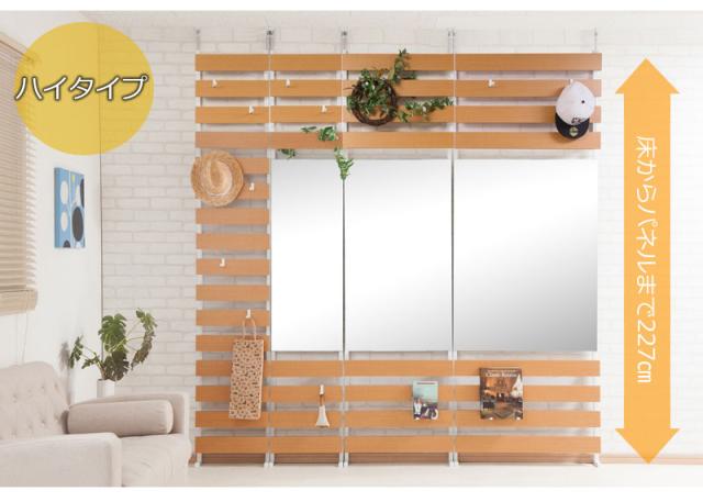 \ポイント消化!/ 突っ張り立体ミラーラック 幅80 ハイタイプ ホワイト ナチュラル ブラウン 衝立 家具 事務所 オフィス 仕切り パーティション 日本製 ラダーラック 突っ張りパーティション つっぱりパーテーション