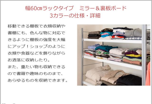 ■商品サイズ/本体:(約)幅60×奥行47×高さ181cm、ラダー間隔 :(約)14cm、ミラー:3mm厚