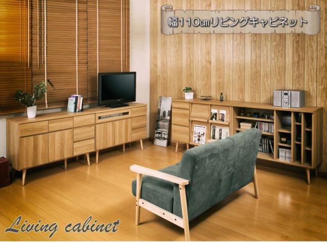 \ポイント消化!/ 幅110 脚付きリビングキャビネット 天然木脚 タンス 収納 木製 棚 おしゃれ ローチェスト 引き出し リビングボード チェスト 扉付き 北欧家具 ナチュラル オーク