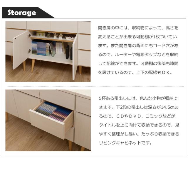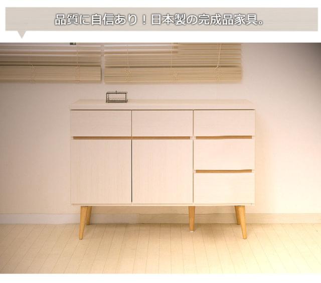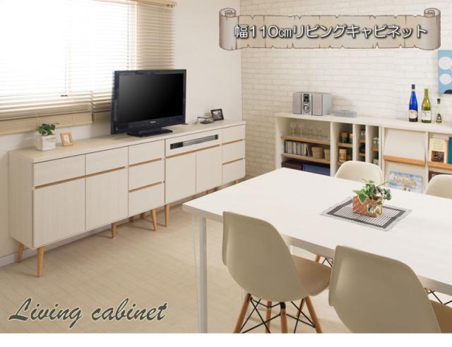 \ポイント消化!/ 幅110 脚付きリビングキャビネット 天然木脚 タンス 収納 木製 棚 おしゃれ ローチェスト 引き出し リビングボード チェスト 扉付き 北欧家具 ホワイト 白