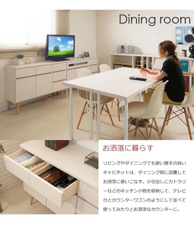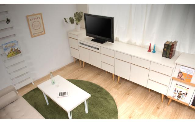 ■商品について/小ぶりでありながら、存在感があるのは脚のシャープ感と2トーンの配色が生む絶妙なバランス。軽やかな印象の小ぶり感はいろいろなタイプと組み合わせてお洒落な雑貨が映える空間を演出。この「バランス」がどこか新しさを感じる、ずっと眺めていたいそんな気持ちにさせてくれる。テレビキャビネットはリビングダイニングでソファからでも見やすいミドル高さに設定。ボードとしてリビングのあらゆるものをしまっておくのに大活躍。取っ手のないプッシュ式扉がすっきりとデザイン性もアップ。掃除も楽な高めの脚付きで、おしゃれ。