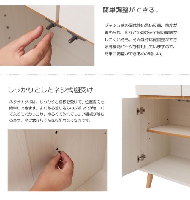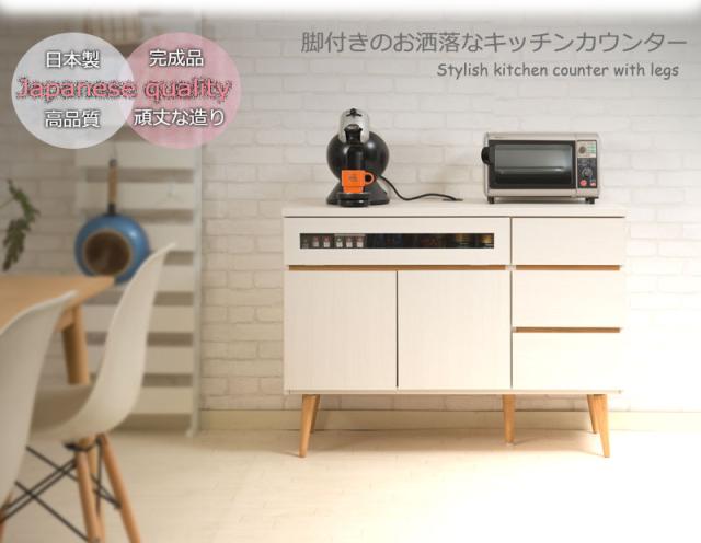 ■商品について/デザイン性を追求した全く新しいリビングボードのようなキッチンカウンター。スキニーな脚がお洒落でキッチンを彩ります。レンジ台として、またストッカーとして多彩に機能性を発揮するカウンターシリーズ。窓付きタイプや収納特化タイプなど全く違う機能を並べて使えば本領発揮!是非実感してください。上品な木目の北欧シンプルカラーは飽きのこないベストカラーです。