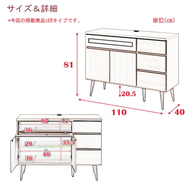 ■商品サイズ/本体:(約)幅110×奥行40×高さ81(脚20.5含む)cm