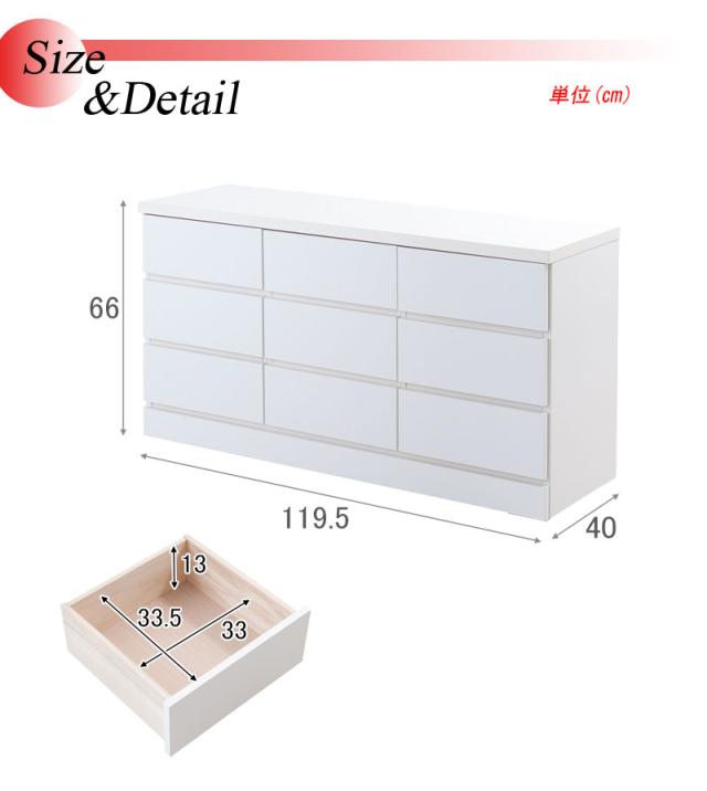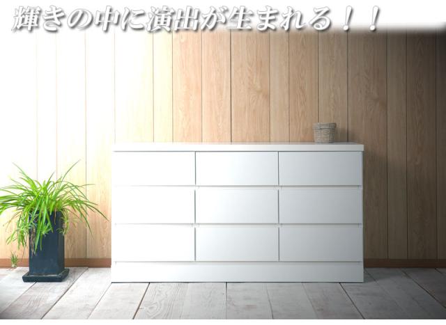 \ポイント消化!/ ホワイトベンチチェスト 幅120cm 多段タイプ 3段 9杯 日本製 完成品 チェスト