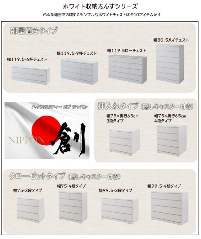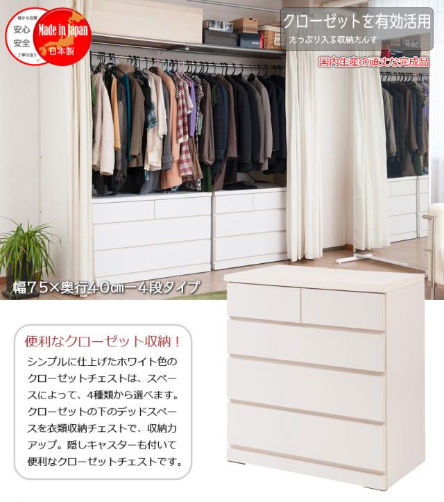 \ポイント消化!/ クローゼット 幅75 奥行40 4段 日本製 国産 完成品 タンス 木製