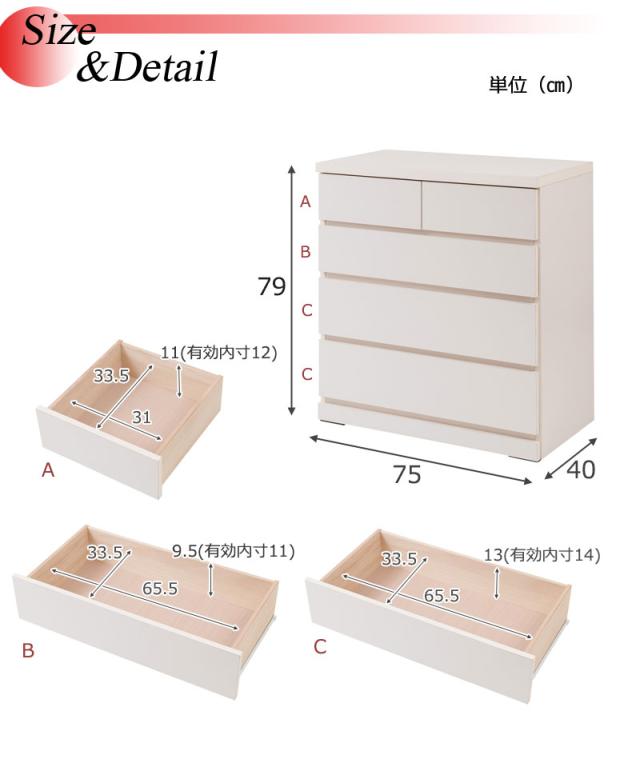 ■引出し内寸/(約)幅31×奥行33.5×深さ11(有効内寸12)cm、(約)幅65.5×奥行33.5×深さ9.5(有効内寸11)cm、(約)幅65.5×奥行33.5×深さ13(有効内寸14)cm