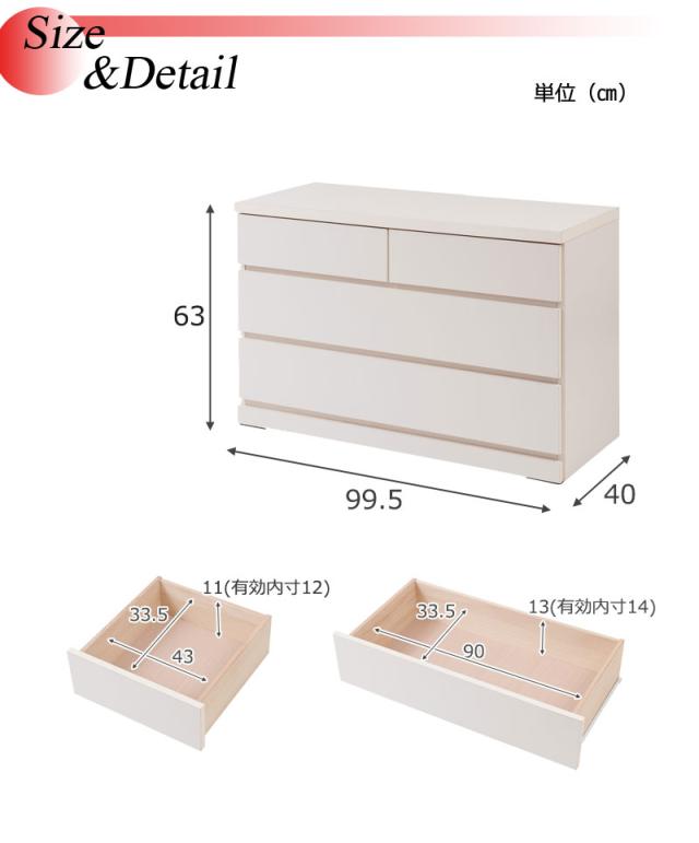 ■引出し内寸/(約)幅43×奥行33.5×深さ11(有効内寸12)cm、(約)幅90×奥行33.5×深さ13(有効内寸14)cm