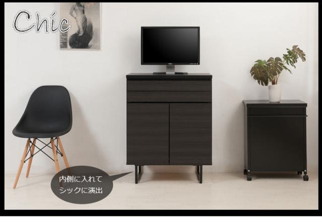 \ポイント消化!/ スタイリッシュブラック スクエアキャビネット デスクタイプ 幅71cm