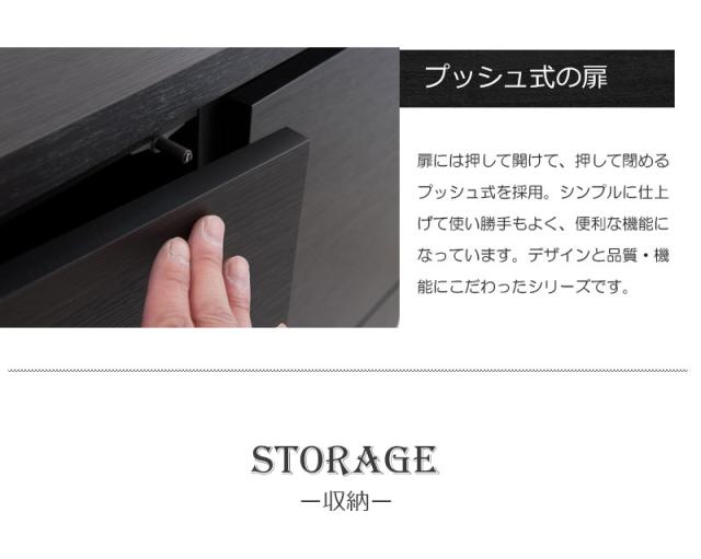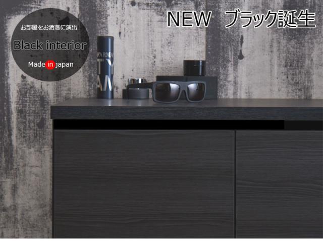 ■商品について/オールブラックで仕上げたキャビネットは風格のある存在感。細脚からスタイリッシュに完成されたスクエア感は直線的で黒木目とマッチ。扉・引出しの構成のキャビネットやローボードに機能的なデスクタイプも加わりリビング空間をカッコよく演出。ソリッドブラックな脚部や細部に木目の効いた表面材が絶妙なバランス。