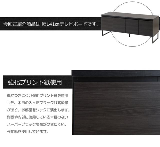 \ポイント消化!/ スタイリッシュブラック スクエアキャビネット ローボードタイプ 幅141cm