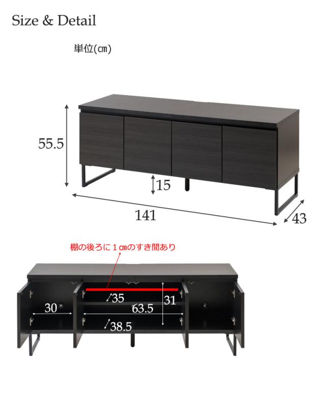 ■商品サイズ/本体:(約)幅141×奥行43×高さ55.5(脚15含む)cm