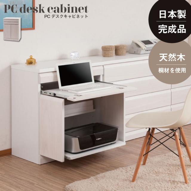 ■商品について/天然木桐材を使用した、幅60cmの省スペースなキャビネット型パソコンデスク。