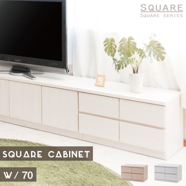 \ポイント消化!/ 【SQUARE】シリーズ スクエアキャビネット幅70ロー 引出しタイプ ホワイト ナチュラル