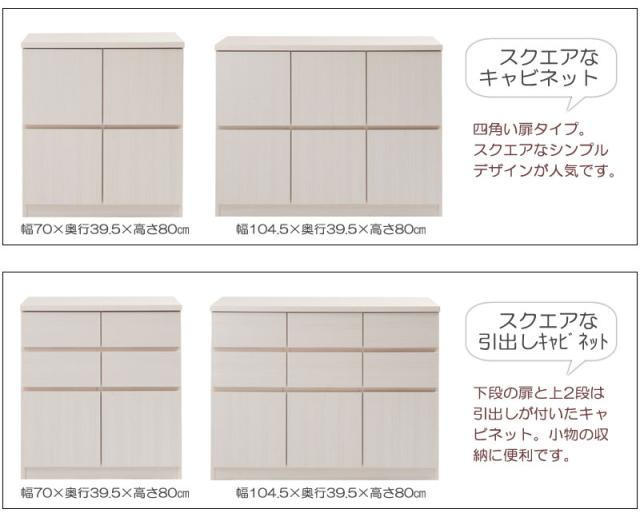 ■商品について/圧迫感なくスッキリと見せるならロータイプがお勧め!リビングや色んな場所でごちゃつく物を綺麗に大量収納でき、どんなお部屋にも合うデザイン・色合いのスクエアキャビネットが登場!シンプルなデザインながらも、様々な便利機能を兼ね備えたキャビネットです。木の質感をリアルに表現しているこだわりのシートを使用しています。モノトーンや北欧のテイストのお部屋になじむホワイト色と、カントリーなどのテイストに合うナチュラル色の2色展開。単体でのご使用や、シリーズで揃えてのご使用など様々な使い方ができます♪天板はテレビを乗せても大丈夫な作りでテレビ台としてもご使用可能。リビングはもちろん、書斎や寝室、ランドリーなどでも活躍する便利なスクエアキャビネットです。