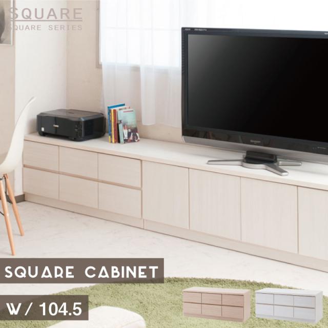 \ポイント消化!/ 【SQUARE】シリーズ スクエアキャビネット幅104ロー 引出しタイプ ホワイト ナチュラル