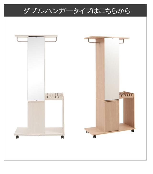 ■商品について/ミラー付きで収納まで完備のハンガーラック。キャスター付きで移動もラクラクな上、衣類も扉付きラックで隠せる収納として、コートなどはハンガーにとオールインワンラック。全身ミラー付きですっきりとしたデザインはリビングにもOK。一人暮らしなど玄関にシューズボックスとしても◎便利なラックは木目の綺麗なホワイト、ナチュラルの2色から。