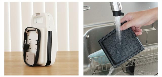パン食派じゃない方にもおすすめのホットサンドメーカー。■かんたん調理■アレンジ次第で色々作れる■アウトドアでも大活躍のコンパクトサイズ■外して洗えるプレート■コードを巻いてすっきり収納持ち運びやすいので、アウトドアにも向いています。キャンプやバーベキューで残った具材をはさんだり、バナナなどのフルーツを入れればデザートに!プレートを取り外して丸洗いすることができます。毎日使いの方にもおすすめです!電源コードは、本体下部に巻きつけて収納すると、立てて保管することができます。※本体が冷めていることを確認してください。