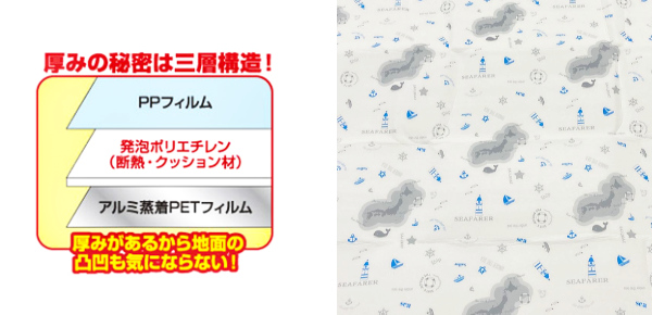 | 材質 | PPフィルム、発砲ポリエチレン、アルミ蒸着PETフィルム |