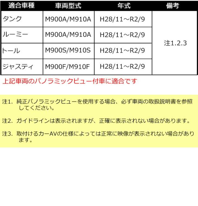 タンク・ルーミー・トール・ジャスティ(H28/11~R2/9)バックカメラ変換アダプター(パノラミックビュー付車用) パノラミックビューカメラ変換アダプター TPY054BA