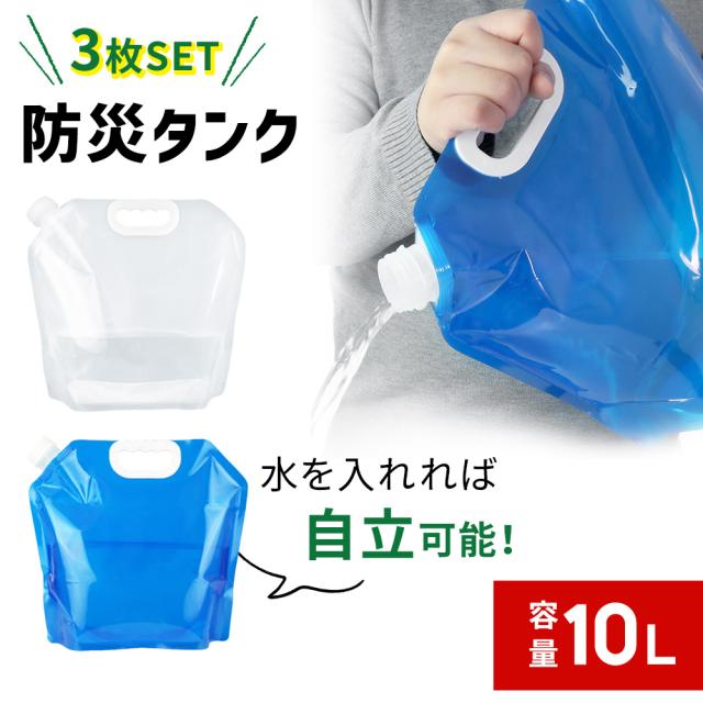 ウォータータンク 10L 3枚セット 給水袋 防災タンク 防災グッズ 水運搬 広口 取手付き 簡易 折りたたみ 非常用 緊急用 災害 災害用 地震 断水 水 持ち運び 屋外 貯水 釣り 飲料水袋 給水タンク スポーツ アウトドア レジャー キャンプ mitas ポイント消化