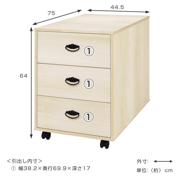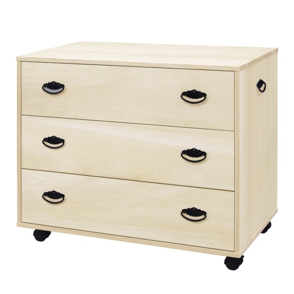 奥行が75cmあり押入にすっぽり収まる3段タイプのタンスです。引出しの内寸は、奥行がしっかりあるので衣類だけでなくシーツなどの収納にも便利です。